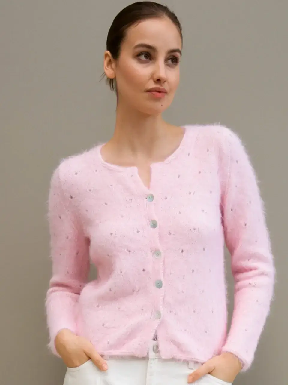 Нежная пушистая фактура с имитацией ангоры придаёт изделиям изысканный объём, визуальную красоту и делает их эффектными.